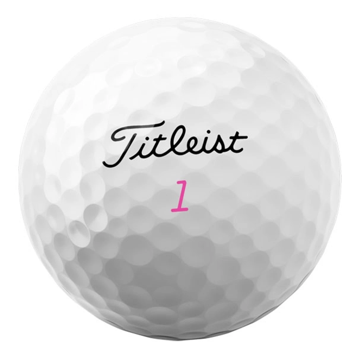Designed for all golfers to deliver consistency on every shot, the Pro V1 delivers longer distance with lower long game spin with the new 2.0 ZG Process Core, Drop-and-Stop greenside control, soft feel with the urethane elastomer cover, and long lasting durability. The new spherically-tiled 352 tetrahedral dimple design provides even more consistent flight. Available with Pink A.I.M. (Alignment Integrated Marking) side stamp.